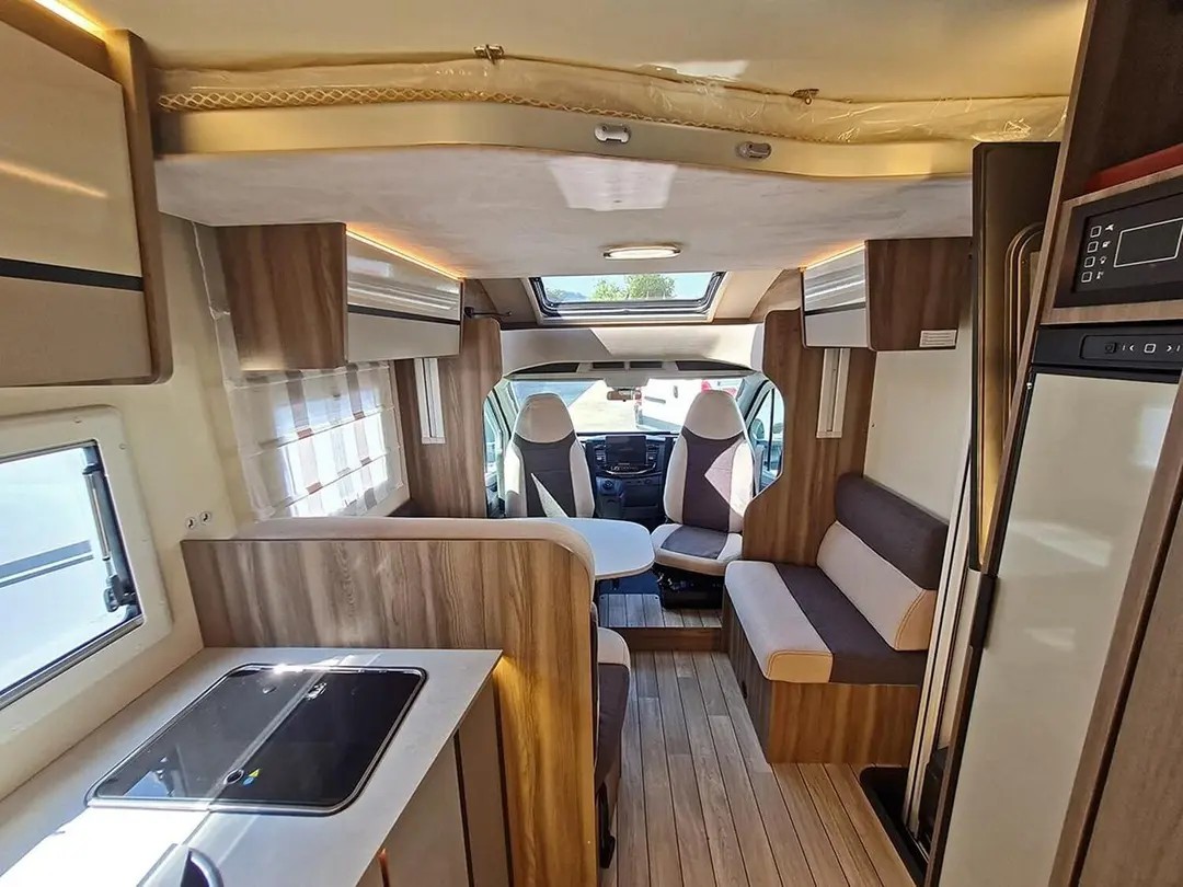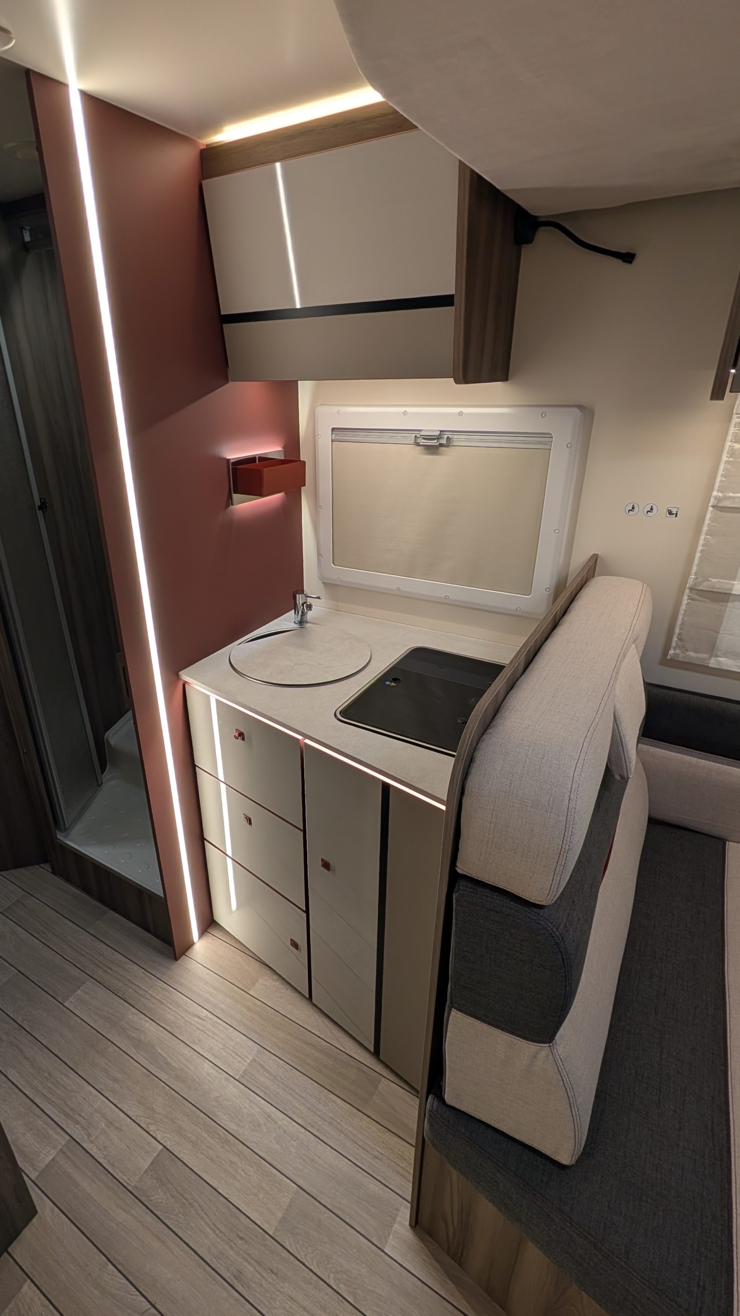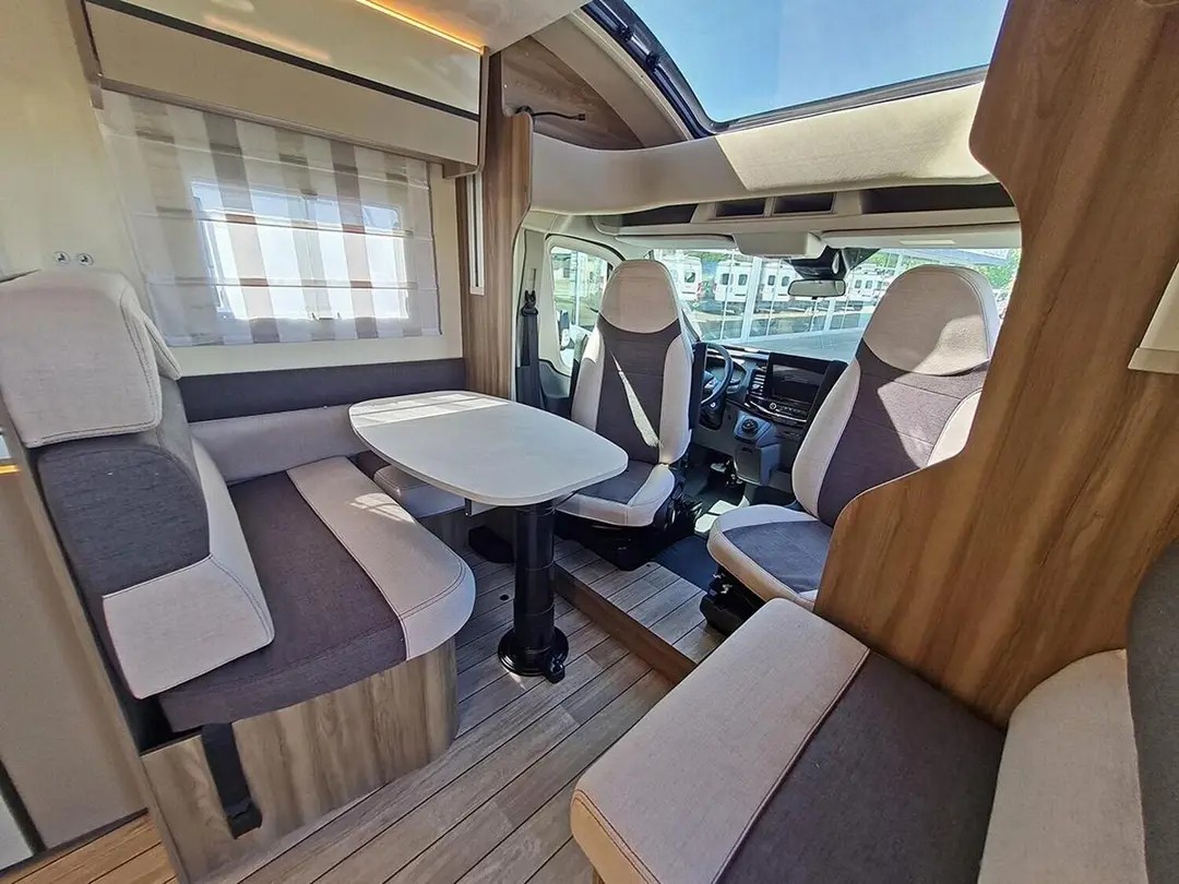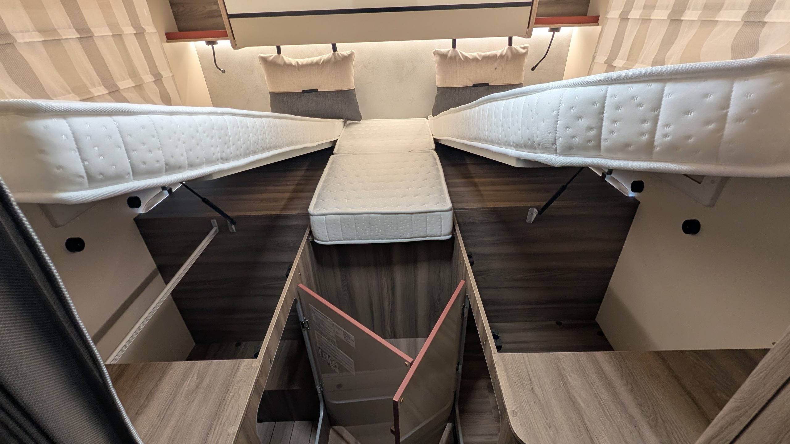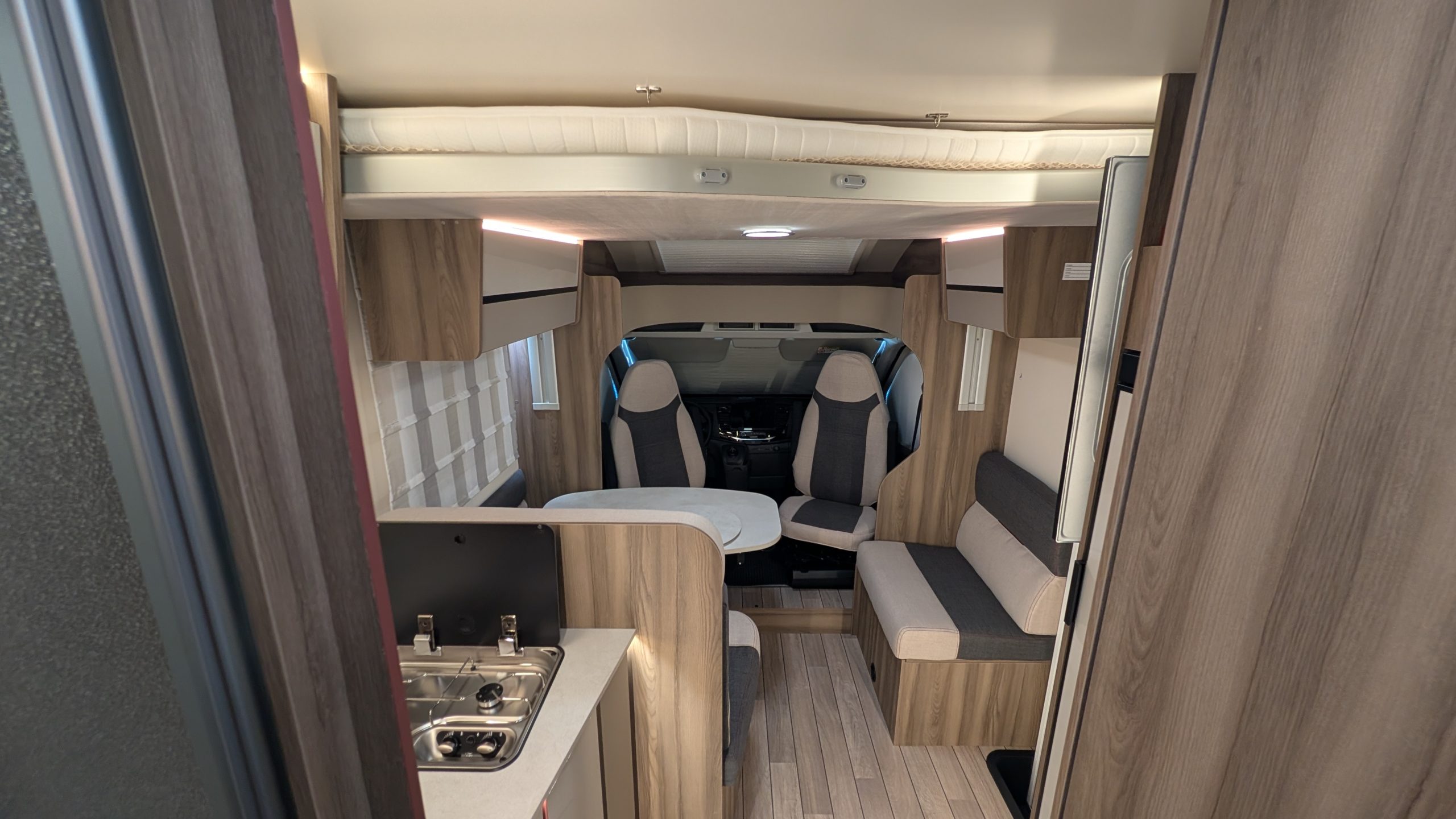 | Schlafmöglichkeit für 5 Personen, Einzelbetten im Heck 210x80 und 210x80, Hubbettt 203x135, zusätzliches Hilfsbett in der Dinette 216x65, Truma Dieselheizung mit elektrischer Option, automatischer Kühlschrank, Warmwasserboiler, uvm. |