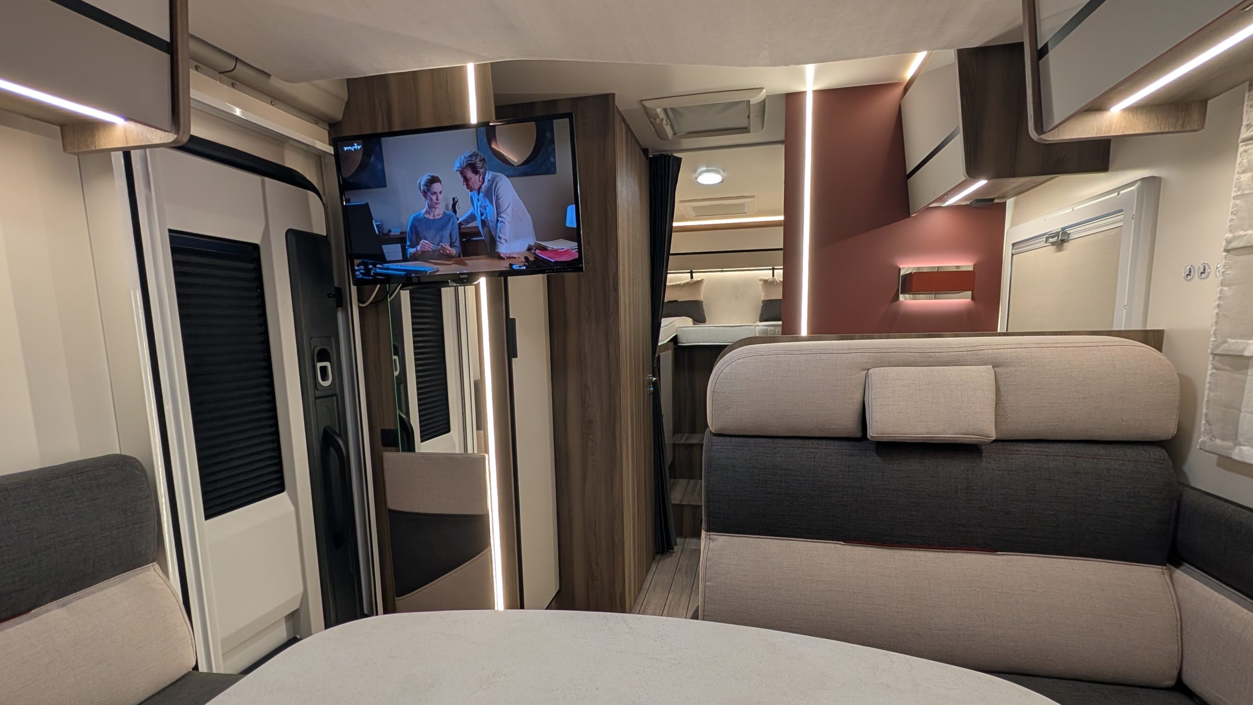 | 165PS, Automatik, ESP, Hillholder, Klimaanlage Fahrerhaus, el. Fensterheber, Tempomat, Zentralverriegelung inkl. Aufbautüre, Rückfahrkamera, Navi, Radio/mp3/Android Auto/Apple Carplay, automatische SAT Anlage, Photovoltaikanlage, Markise, Einzelbetten im Heck - umbaubar zu einem großen Heckbett, Doppelbett über Sitzgruppe - elektrisch absenkbar, Außendusche, Fahrradträger |